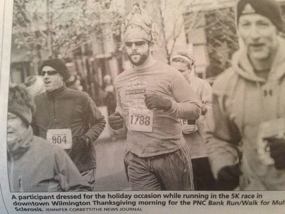 I used the same practice when I ran my first 5K that Thanksgiving (the birthday party 5K ended up being canceled). My stepbrother agreed to run the early-morning race with me and tried to chat with me, but I was too busy counting windows. The next morning, our picture appeared in the newspaper. "If that's what happens when I run, I'm never stopping," I joked.