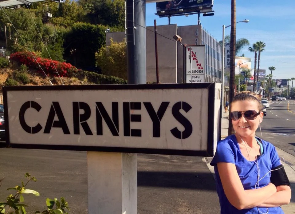 I'll head up the Sunset Strip, past the toned-down modern-day Garden of Allah, a place called the Chateau Marmont. I'll pass the Laugh Factory and Carney's—the restaurant I always pretend is named after me, though I'm happy it's not because it mainly serves hot dogs. This is the steepest incline of my whole run, and as I have to "run 10 miles straight," per my father's list, I have to pace myself here.