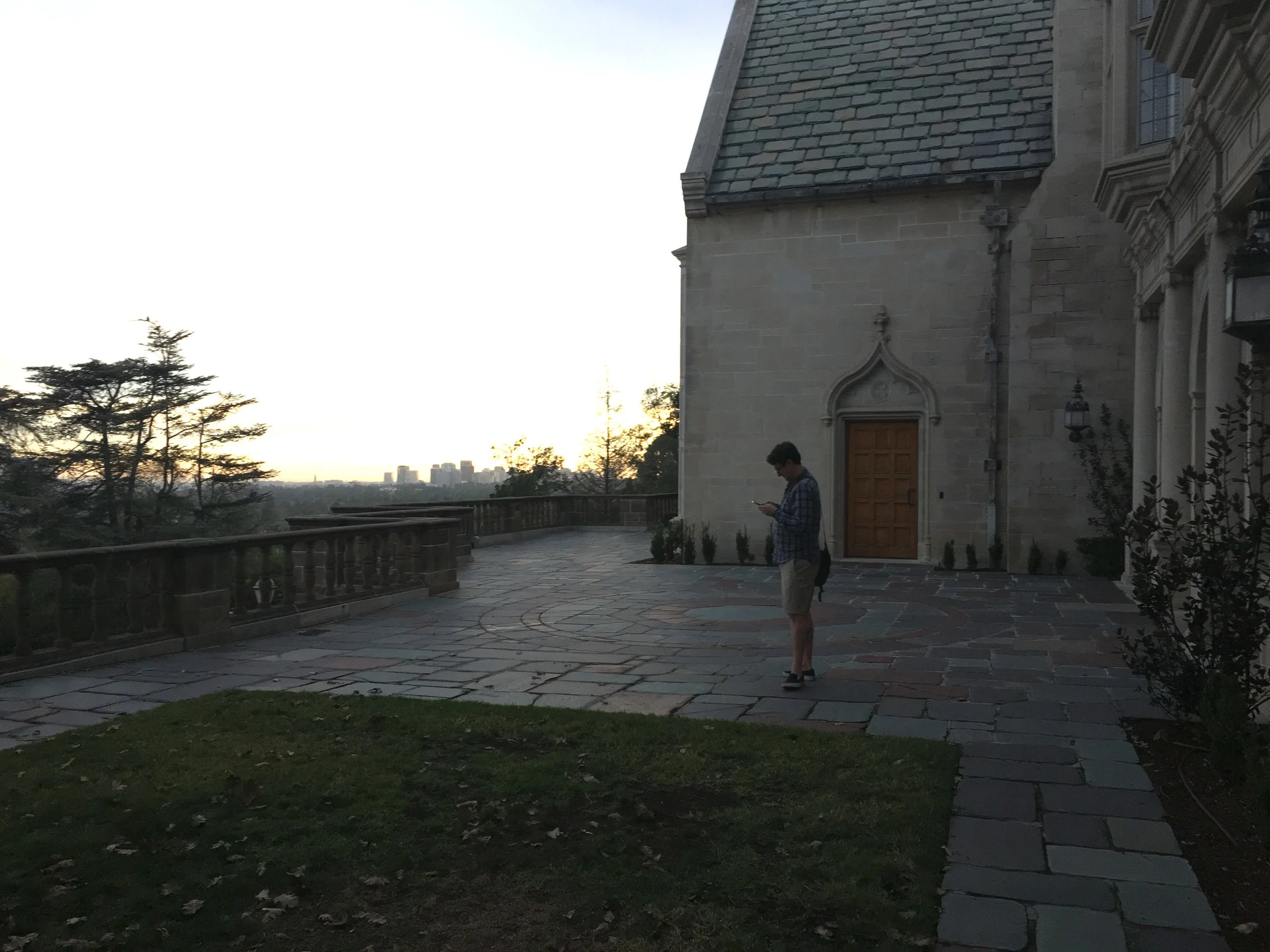 I missed Kelly terribly and was so excited for the trip. Our first stop was the Getty Center, a branch of the Getty Museum that sits atop a hill north of the city. You can see panoramic views of all of Los Angeles from up there, from its white marble balconies. You can see all the way down to the ocean. Even though it was the middle of October, it was warm and sunny, the way it feels on a fall day near sunset on the East Coast. As the wind picked up and John pointed out the blue of the ocean, it felt like I was in heaven.