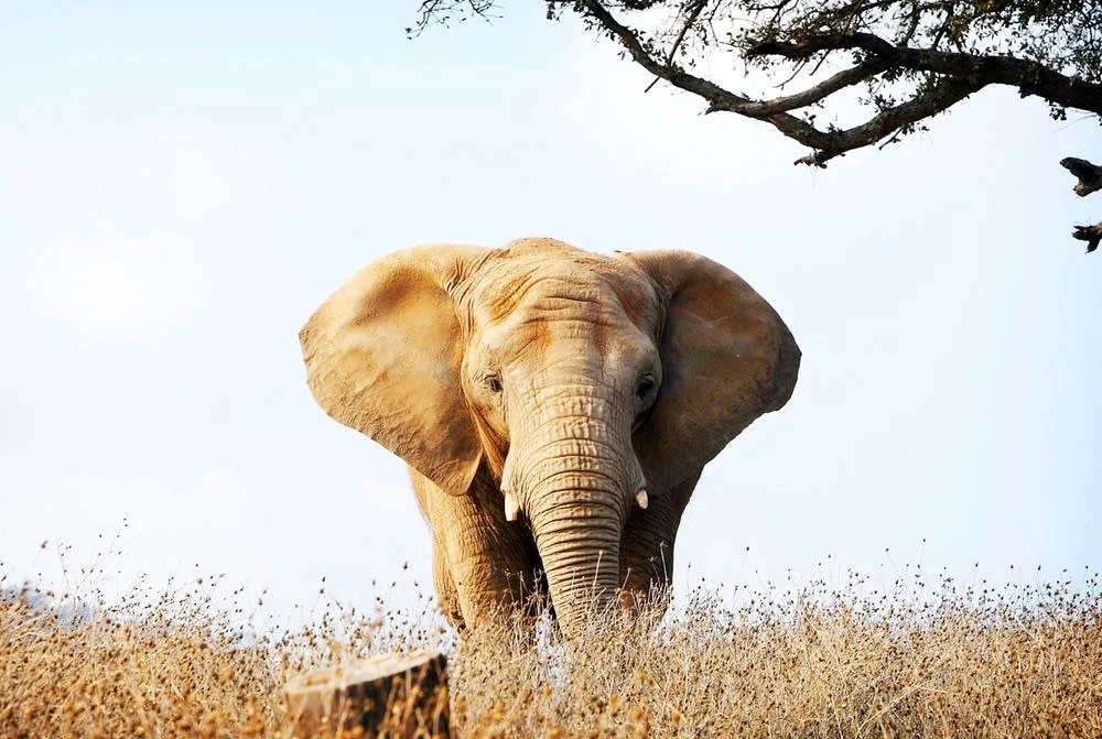 They shift from side to side and they buck their heads up and down. In the documentary, Tomlin explains that elephants are migratory animals. They spend their lives traveling from one place to the next, surrounded by their family and friends. Their memory is so great that they never forget any elephant they've met, even if that elephant has died. They stand over elephant bones, sniffing them with their long trunks, trying to discern which elephant's head that skull once resided in. They mourn for their loved ones when they're gone. They're unlike most animals this way.
