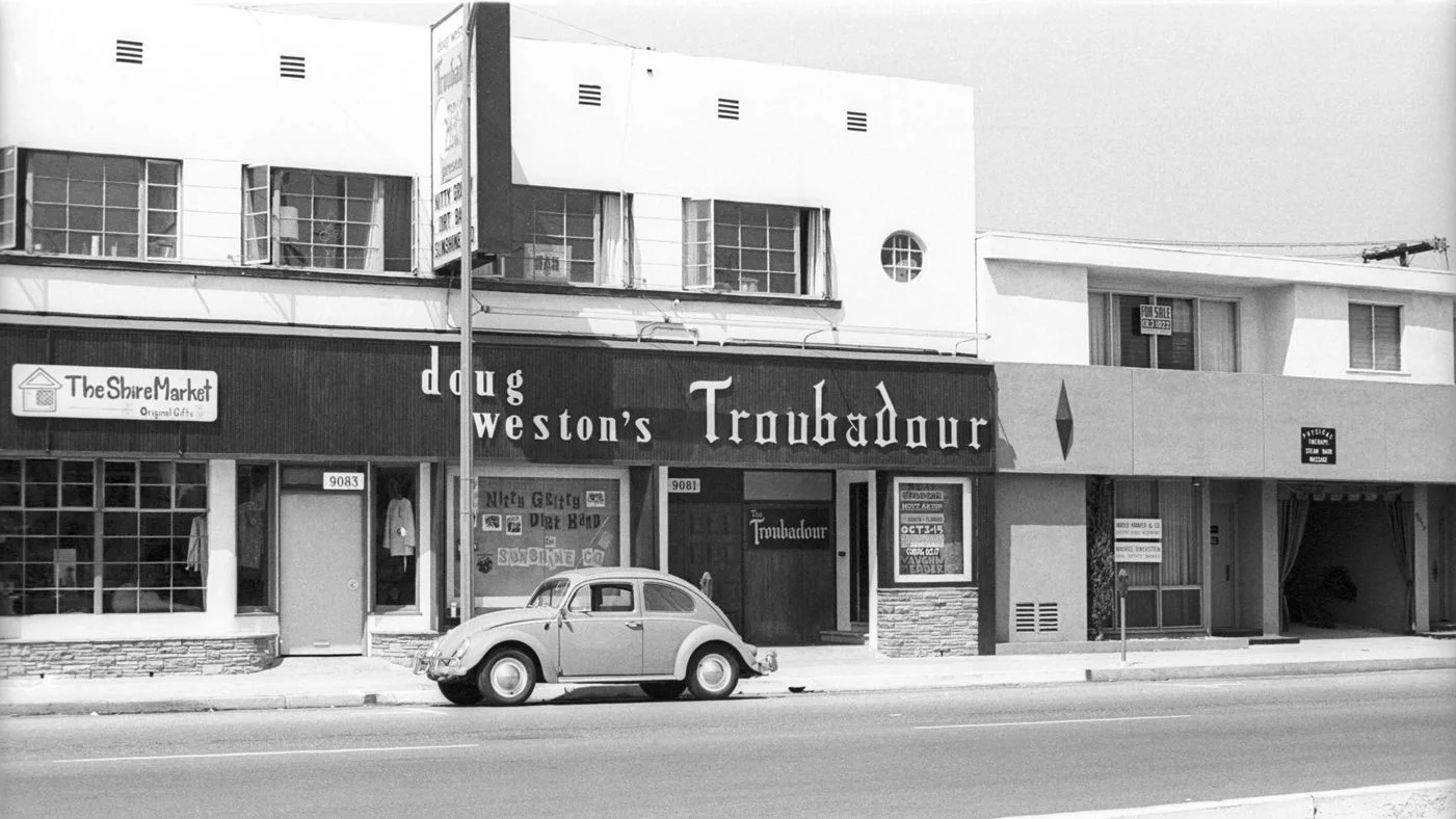 I'll hit mile 2 just before I pass the Troubadour, a nightclub opened in 1957 and a major center for folk music in the 1960s. Here's the short list of things that happened there: the Byrds played Bob Dylan's song "Tambourine Man" for the first time in 1965; Buffalo Springfield made their live debut in 1966; Joni Mitchell made her Los Angeles debut, Gordon Lightfoot made his U.S. debut and Richard Pryor recorded his live debut album in 1968; Neil Young played his debut solo show in L.A. and James Taylor made his solo debut in 1969; Elton John did his first show in the U.S., introduced by Neil Diamond, in 1970; Janis Joplin partied all night and was found dead in a hotel the next day; James Taylor played "You've Got a Friend" for the first time; Lori Lieberman heard Don McLean perform and wrote "Killing Me Softly with His Song"; Tom Waits was discovered during an amateur night; Carly Simon opened for Cat Stevens and met James Taylor, her future husband, for the first time; Billy Joel made his L.A. debut in 1972; Hall and Oates made their L.A. debut in 1973; Brian Wilson jumped on stage wearing a bathrobe and slippers, Bruce Springsteen played a set that started at 2 a.m. and John Lennon and Harry Nilsson were escorted out for heckling the Smothers Brothers in 1974; Miles Davis recorded an album, Leonard Cohen met Bob Dylan between sets and Willie Nelson performed a live radio broadcast in 1976; Metallica made its Los Angeles headline debut in 1982; Pearl Jam played for the first time under that band name in 1991; Fiona Apple performed live for the first time in the U.S. in 1996; Radiohead made their U.S. live debut of OK Computer in 1997; and John Legend and the Roots made their live L.A. debut of their first collaboration record together in 2010.