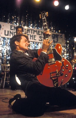 When Marty goes back to 1955 Hill Valley and learns how George became George, he's able to impart wisdom that he's had the privilege of accessing in a way his father hasn't, much like I have wisdom that my dad never had the chance to accrue. I'm able to revisit his life's intentions and use all that he taught me as a parent to make his dreams real. It's the same thing Marty does, and when he does this, when he's able to instill confidence in his dad, he magically instills more confidence in himself. In one of the final scenes of the movie, as he's waiting for George to kiss Lorraine on the dance floor and Marvin Berry is singing "Earth Angel," he watches as his fingers begin to disappear—his very existence depends on this one, permanently fixed-in-time moment. If it doesn't happen, he no longer happens. After George successfully plants the kiss, a brought-back-to-life Marty stuns the students with his rendition of "Johnny B. Goode." Because his father showed confidence, now he can, too. The new-and-improved 1985 Marty isn't afraid of submitting a demo tape anymore. He's rewritten his future by rewriting his father's past.