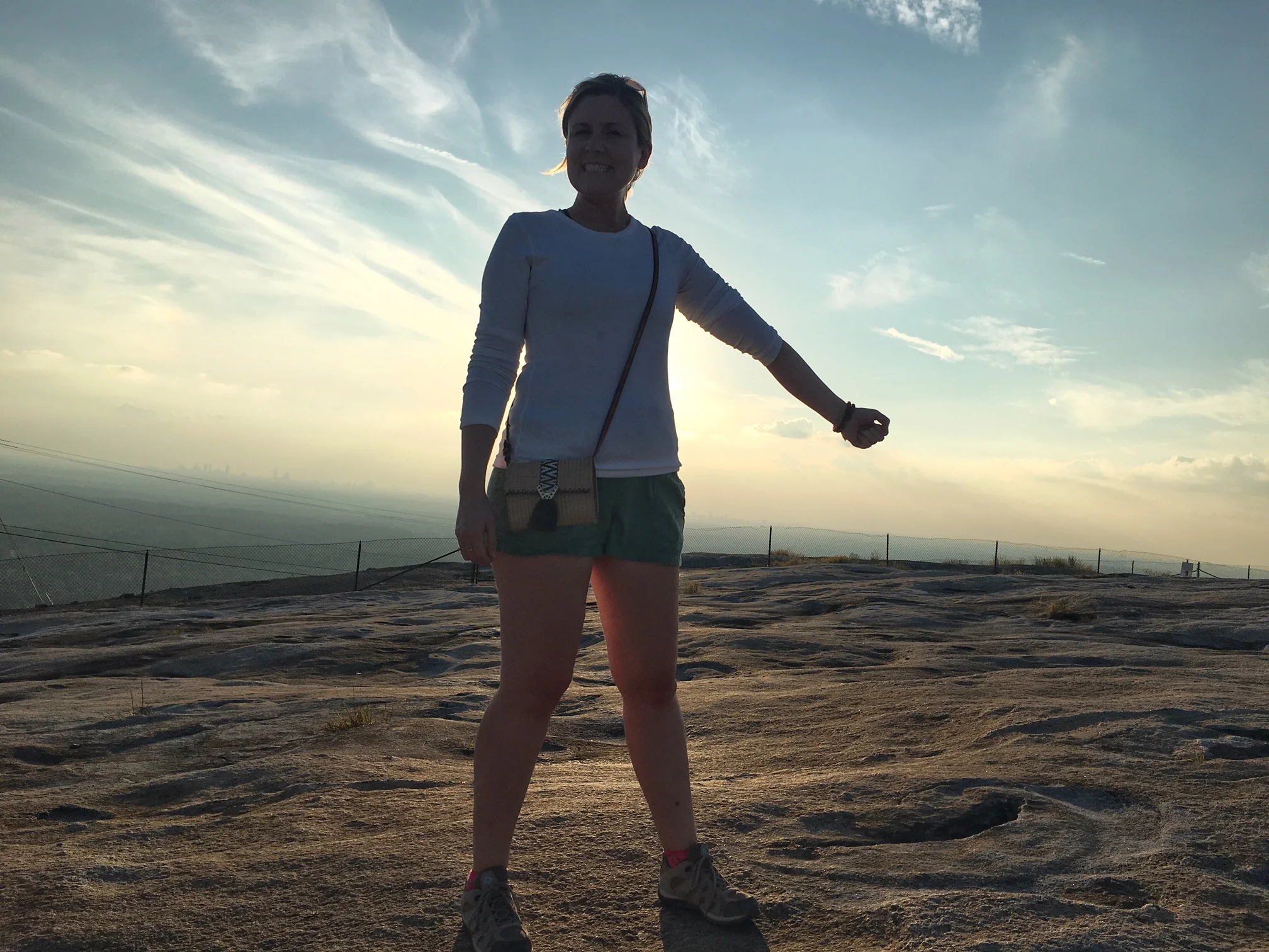Stone Mountain, said to be 280 million years old, is pure granite. Gemologists say the stone, extracted from the ocean floor, helps calm emotions because it contains both water and earth. It helps balance relationships, and enhances cooperation and diplomacy. We felt a true sense of teamwork when we reached the top, and I got to recreate the 40-year-old photo of my dad raising his fist, having conquered the mountain.
